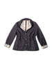 Guaranteed Authentic Burberry Quilted jacket or 100% of your money back. This jacket is in a quilted black fabric with nova check lining, two pockets, and  front snap closures.
