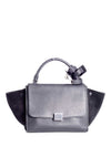 Very GoodGuaranteed Authentic Celine Mini Trapeze Bag or 100% of your money back. This bag is in black calfskin leather and silver hardware. It features suede wings with button fastenings that are a lovely accent to the grained leather. The bag has a rolled leather top handle, removable strap with shoulder guard, a frontal flap with turn lock closure and zipped rear pocket. The interior is in smooth black leather with hanging patch pockets.