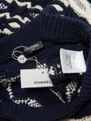 New with TagsGuaranteed Authentic Chanel Cashmere Knitted Skirt or 100% of your money back. This Chanel skirt is crafted in 100% navy cashmere fabric knit with striped white knitted accents. It features a stretchable waistband and showcases a "Chanel 31 Rue Cambon" button with the CC logo.