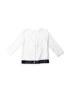 New with TagsGuaranteed Authentic Chanel Top or 100% of your money back. This Chanel blouse is in white silk fabric featuring Chanel logos throughout, CC logo back button closure.