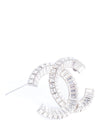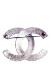 CHANEL CC Logo Swarovski Crystal Large Brooch Pin Silver