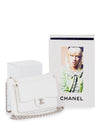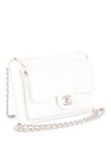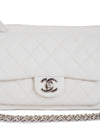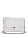 CHANEL Quilted Caviar Leather CC Logo Flap Messenger Bag White Silver