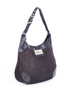 Very GoodGuaranteed Authentic Christian Dior Leather Diorisima Hobo Bag or 100% of your money back. This vintage bag is in black leather and canvas featuring the iconic Dior insignia throughout and a large silver Dior logo in front. The magnetic closure opens to a spacious interior in black canvas.
