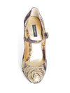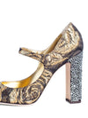 Dolce & Gabbana Brocade Rhinestone Mary Jane Block Heels Gold