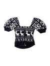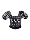 Like NewGuaranteed Authentic Dolce & Gabbana Top or 100% of your money back. It is in a black knitted fabric with a white jacquard design. It features a black zipper closure, a square neckline and puff sleeves.