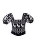 Dolce & Gabbana Knit Fitted Puff Sleeve Corset Top Black White