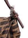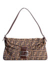 Like NewGuaranteed Authentic Fendi Flap Bag or 100% of your money back. This Fendi bag is in brown Zucca print canvas with silver hardware. It features an FF logo on front closure, a brown leather shoulder strap, interior canvas lining to compliment the exterior, and one zippered pocket.