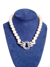 Givenchy Vintage Pearl Black Enamel Crystal Artdeco Necklace White