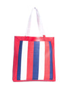 New with TagsGuaranteed Authentic Gucci Tote Bag or 100% of your money back. This Gucci bag is in red, white and blue striped canvas with a red leather trim. It features the Gucci logo, a web stripe, a red canvas lining and one interior zippered pocket.