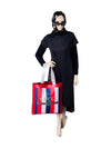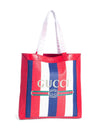 Gucci Logo Striped Leather Canvas Tote Bag Red White Blue