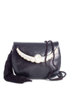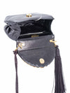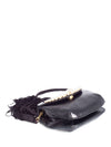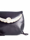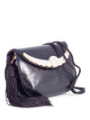 Judith Leiber Python Leather Crystal Tassel Flap Messenger Bag Black-designer resale