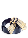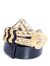 Judith Leiber Vintage Snakeskin Lion Head Adjustable Belt Black Gold