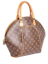 Very GoodGuaranteed Authentic Louis Vuitton Ellipse Bag or 100% of your money back. This bag is in brown monogram canvas with vachetta leather trim and polished brass hardware. It features dual top handles, top zipped closure, and a beige canvas interior with a patch pocket.
