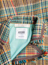 Moschino Wool Plaid Houndstooth Fringe Fitted Jacket Multicolor