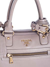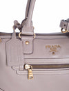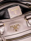 Like NewGuaranteed Authentic Prada bag or 100% of your money back. This Prada bag is in soft taupe leather with gold tone hardware. This bag features two top handles, a Prada clochette, and a removable leather shoulder strap to suit your preference. The front showcases the Prada logo above the zipper pocket as well as another zipper pocket in the rear. The top zipper closure opens to a spacious interior with a matching tonal canvas lining.
