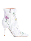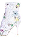 Guaranteed Authentic Rene Caovilla Boots or 100% of your money back. These boots are in silver rhinestones with a floral rhinestone design throughout and a side zipper closure. Made in Italy.