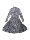 Versace Logo Print Silk Pleated Midi Dress Black White