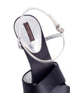 GoodGuaranteed Authentic Louis Vuitton Pumps or 100% of your money back. These LV shoes are in black satin, silver leather, and blue suede with a 4.5 inch heel, featuring pointy toes, silver Louis Vuitton logo imprint on both shoes, and a metallic buckle strap closure around the ankles.
