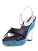 Louis Vuitton Suede Leather Wedge Pumps Blue Black Silver