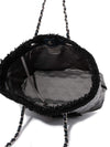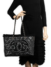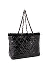 CHANEL CC Logo Quilted Fringe Shopper Bag Black