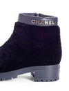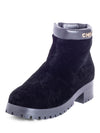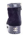 CHANEL CC Logo Shearling Fur Leather Boots Black