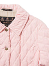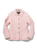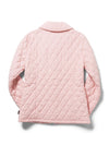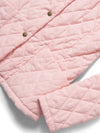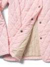 Like NewGuaranteed Authentic Barbour Quilted Jacket or 100% of your money back. This Barbour jacket is in a quilted suede like pink fabric with a beige inner lining, featuring two front pockets, cuffed collar, and a gold tone Barbour logo button closure.