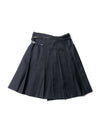 Burberry Wool Belted Pin Pleated Fringe Skirt Black-designer resale