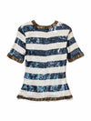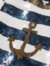 Cardiere Et Cie Silk Anchor Stripe Sequin Top Blue White