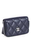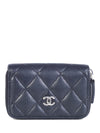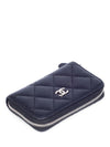 CHANEL CC Logo Caviar Leather Zippered Credit Card Wallet Black Silver