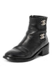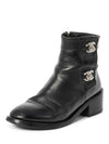Chanel CC Logo Leather Ankle Biker Boots Black Silver