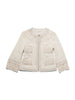 CHANEL CC Logo Lesage Tweed Camellia Beaded Fringe Jacket Ivory