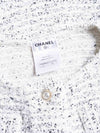 Like NewGuaranteed Authentic CHANEL Tweed Blouse or 100% of your money back. This sleeveless top is crafted in white tweed fabric blend interwoven with hits of black. It features pearl "CC" logo buttons and two front chest pockets.