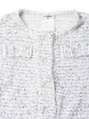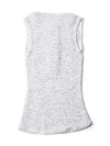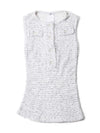 CHANEL CC Logo Pearl Tweed Fringe Sleeveless Blouse White