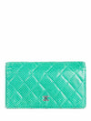 CHANEL CC Logo Vintage Perforated Quilted Leather Wallet Green