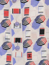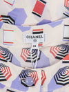 New with TagsGuaranteed Authentic CHANEL Beach Blouse or 100% of your money back. This CHANEL top is crafted in 100% pink silk fabric that showcases a multicolor beach motif. It features purple opaque CC logo buttons and pleated embellishments on the chest and back.