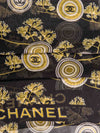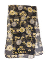 CHANEL Vintage CC Logo Silk Medallion Scarf Black Gold