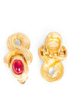 Christian Dior Logo Gripoix Clip On Earrings Gold Red