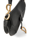 Christian Dior Logo Leather Mini Saddle Bag Black Gold