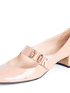 Christian Dior Logo Patent Leather Mary Jane Block Heels Beige