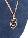 Like NewGuaranteed Authentic Custom 14K Gold Floral Motif Necklace or 100% of your money back. This necklace is in 14K gold with floral motif on the pendant. It features a matching 14K gold chain that can be worn on it`s own.