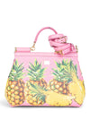 Dolce & Gabbana Logo Pineapple Leather Miss Sicily Bag Pink Yellow