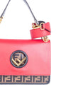 Fendi FF Zucca Leather Flap Messenger Bag Brown Red