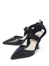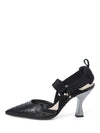 Very GoodGuaranteed Authentic Fendi Zucca Heels or 100% of your money back. These Fendi heels are in black Zucca leather with black canvas straps and silver hardware detailing. They the feature a perforated FF Zucca design on the toe and a 3.5" shiny heel.