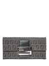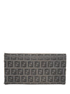 Fendi Logo Zucca Leather Buckle Wallet Black Silver