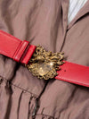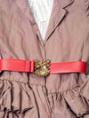 Gryphon Runway Belted Ruffle Rain Coat Brown Red