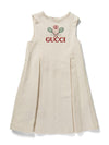 Gucci GG Logo Embroidered Pleated Mini Dress Ivory
