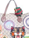Gucci GG Supreme Patch Logo Tiger Tote Bag Brown