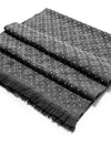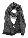 Gucci GG Supreme Wool Studded Fringe Scarf Grey Charcoal Grey