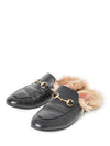 Gucci Leather Horsebit Fur Lined Loafers Black Gold