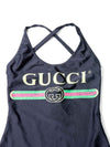 Very GoodGuaranteed Authentic Gucci Swimming Suit or 100% of your money back. This swim suit is in black nylon fabric blend, featuring the Gucci GG logo and their signature web-stripe design.